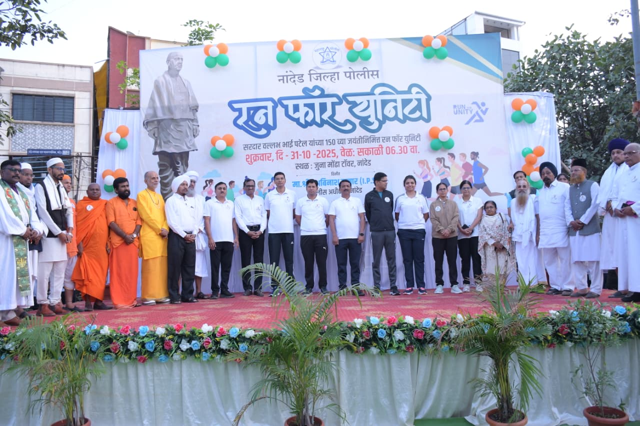 सरदार वल्लभभाई पटेल यांच्या १५० व्या जयंतीनिमित्त नांदेड जिल्हा पोलीस दलाच्या वतीने रन फॉर युनिटी कार्यक्रम उत्साहात संपन्न झाला.व सदर कार्यक्रमास सुमारे ५००० नागरिकांची उपस्थिती होती.
